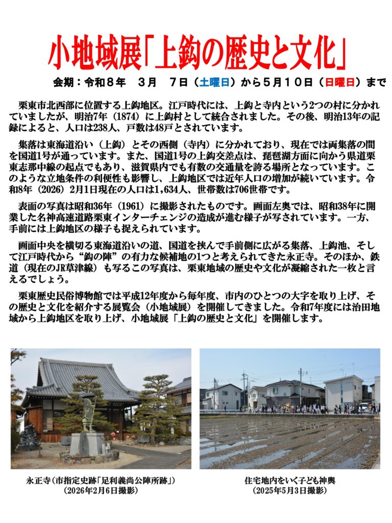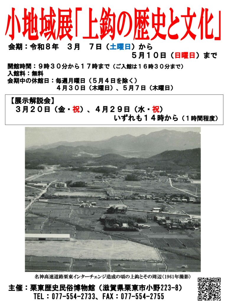 【栗東歴史民俗博物館】小地域展「上鈎の歴史と文化」開催のお知らせ